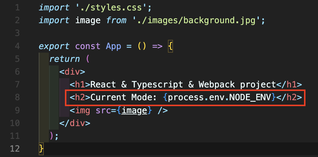 Step 8: App.tsx 파일을 열어서 빨간색 박스 부분처럼 추가해줍니다. 이 변수를 활용해서 개발 모드인지 여부를 출력해줄 수 있도록 해줍니다.