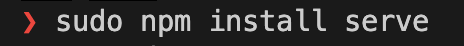 Step 9: 터미널에 sudo npm install serve 입력해서 설치해줍니다.