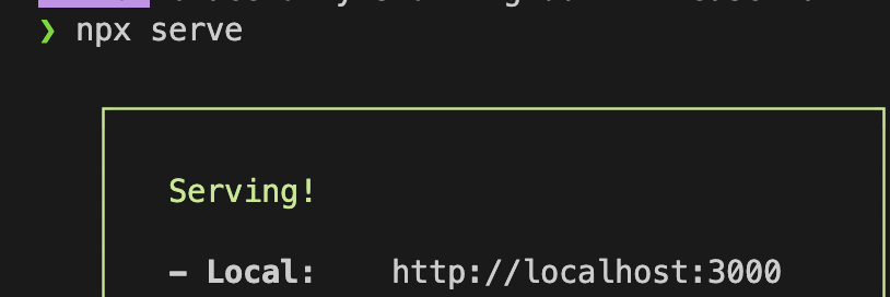 Step 11: cd build를 먼저 입력하시고 npx serve를 입력해준다음 http://localhost:3000을 웹에서 열어줍니다.