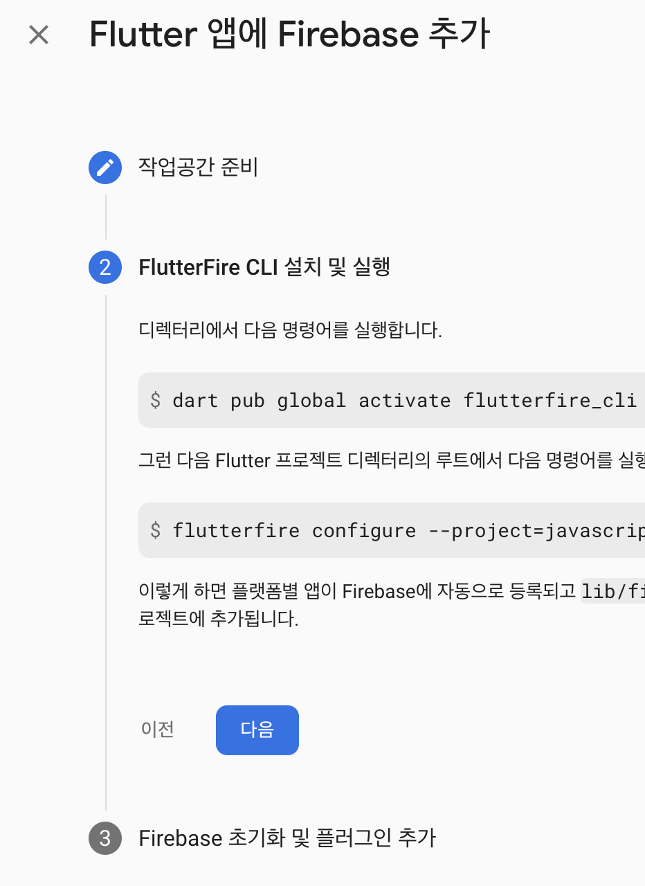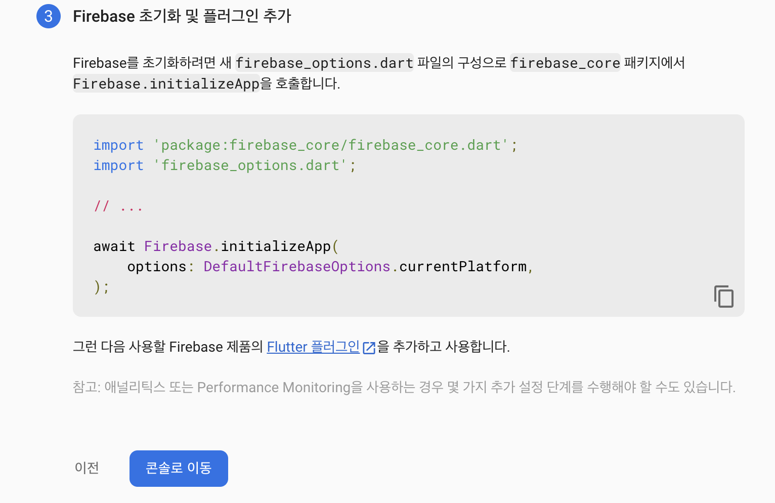Step 4: 3번째 단계인 Firebase 초기화 및 플러그인 추가 부분에서 다음처럼 그대로 따라서 입력해줍니다.
