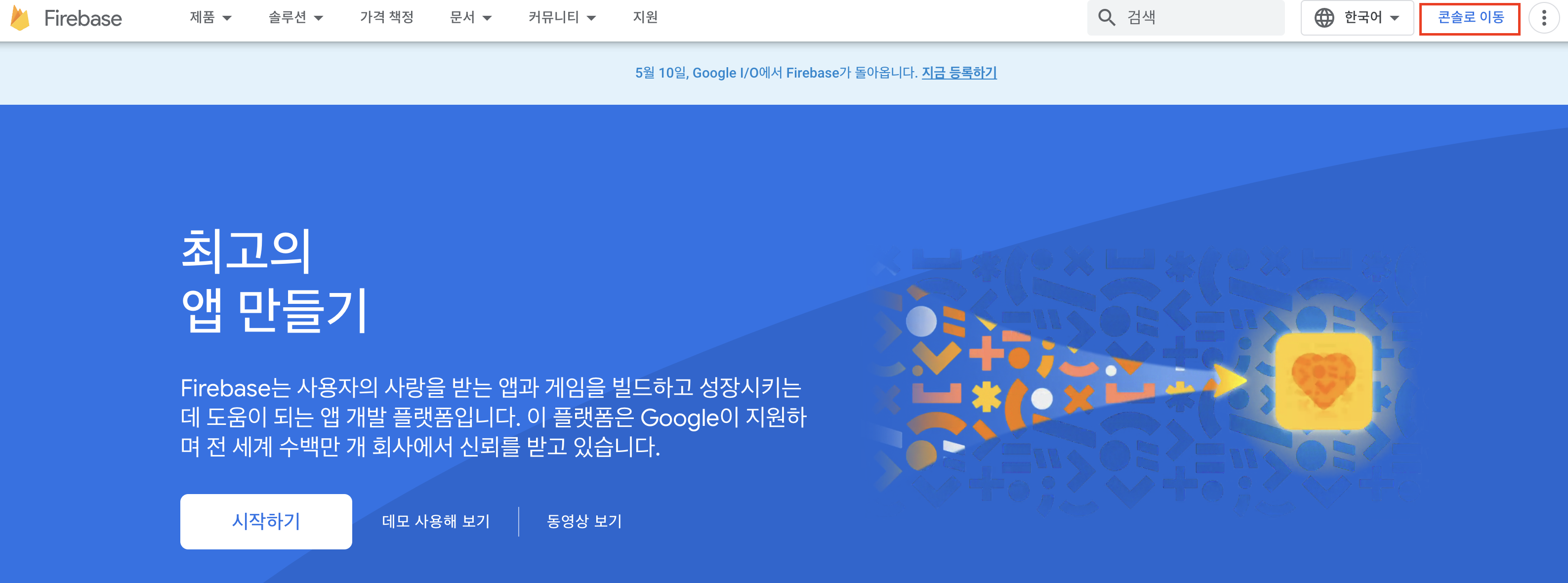 Step 1: 파이어베이스 웹사이트에 접속하셔서 구글 아이디로 로그인 하신 뒤, 콘솔로 이동해줍니다.