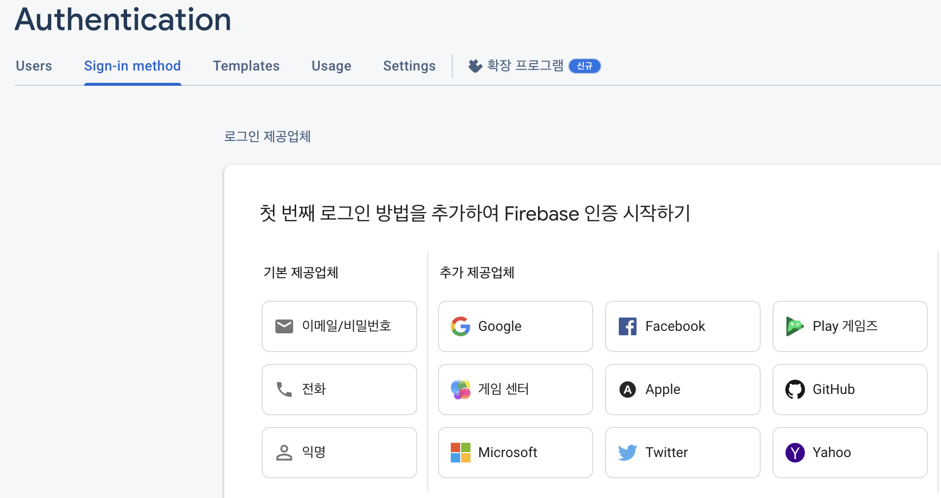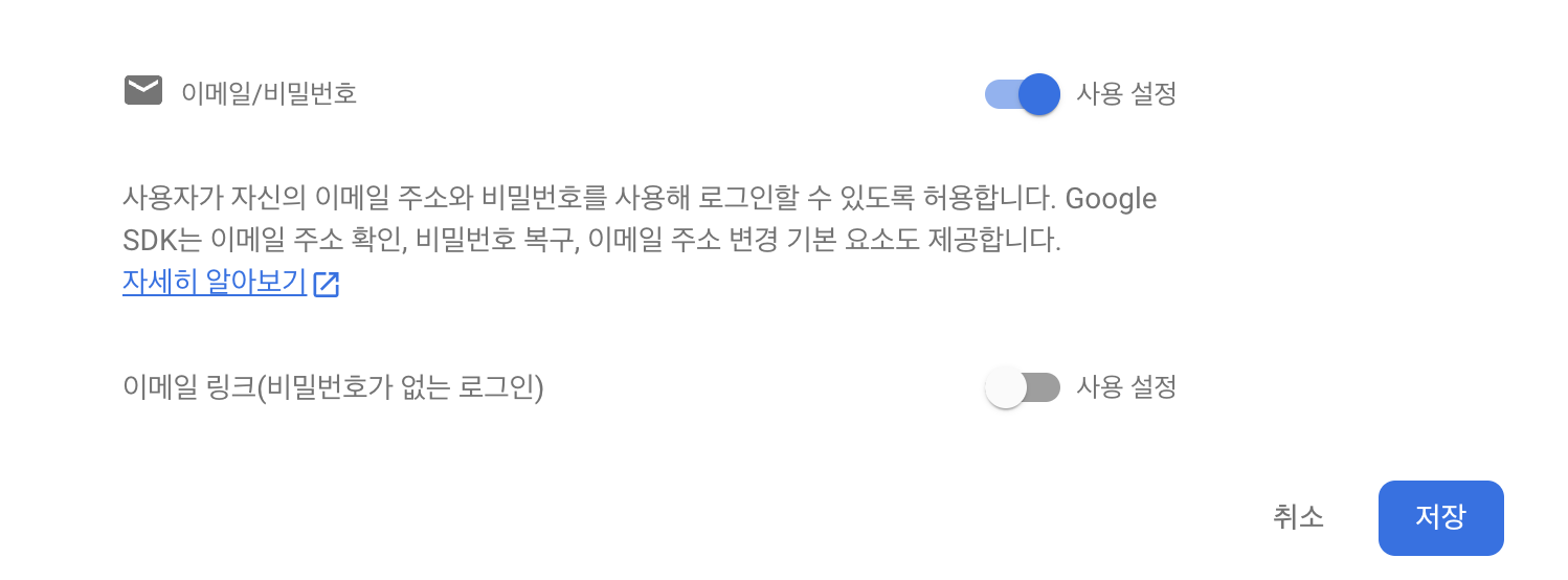 Step 3: 이메일/비밀번호 부분을 선택해줍니다.