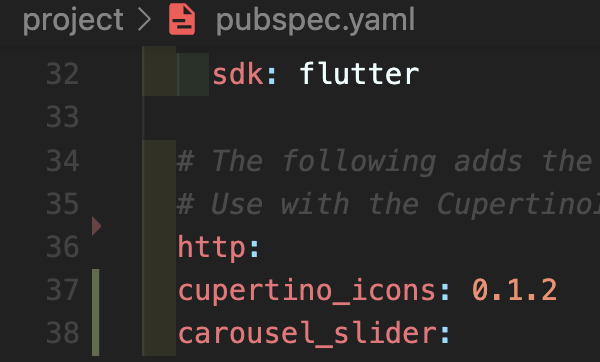 Step 1: pubspec.yaml에 carousel_slider: 를 추가해줍니다.