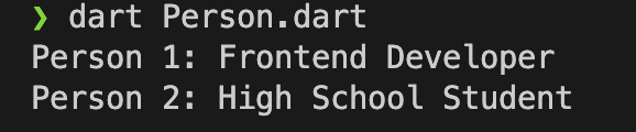 Step 7: dart Person.dart 하였을 때 아래처럼 나오면 성공입니다.