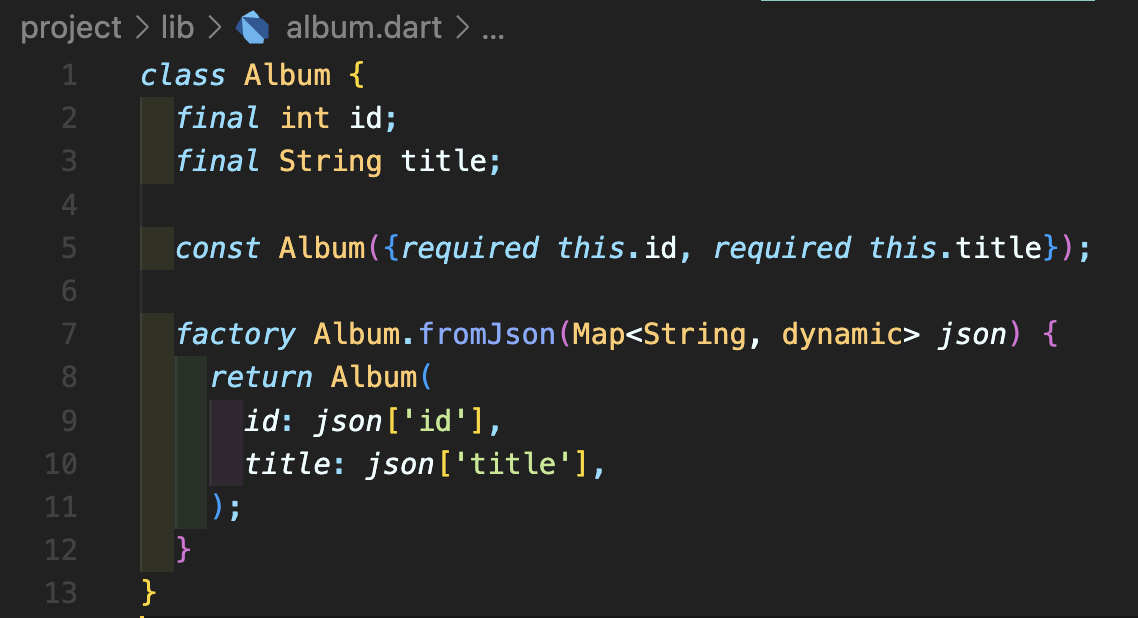 Step 3: Model를 위한 Album 클래스를 생성해서 아래처럼 작성합니다.