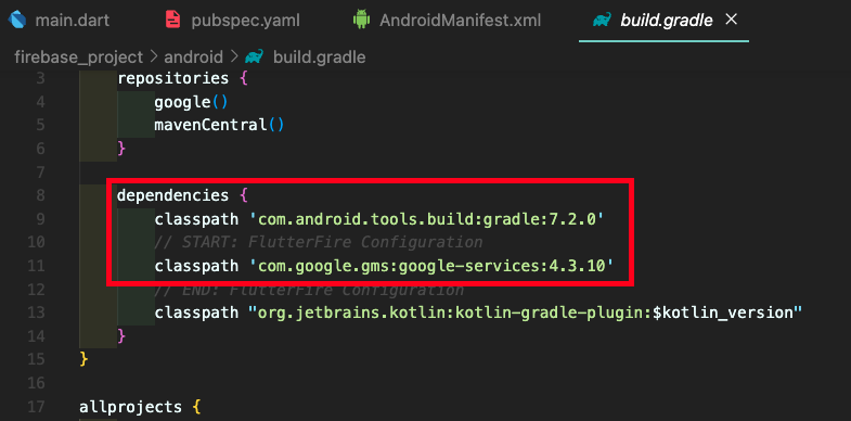 Step 3: Android > build.gradle에 들어가셔서 다음처럼 구성해주시면 됩니다. (버전은 다를 수 있습니다)