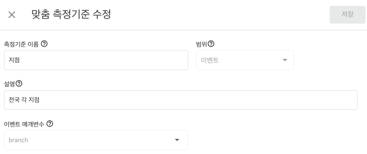 이 탐색 보고서를 만들 때 맞춤 측정 기준을 추가하는 경우가 있습니다. 물론 애널리틱스4에서 자체적으로 많은 데이터가 제공되지만 각 비즈니스의 상황에 따라 맞춤 데이터의 측정이 필요할 때에는 맞춤 측정 기준을 추가해주어야 합니다. 오늘 예제에서는 강남 지점, 역삼 지점 등 어떤 지점인지에 대한 맞춤 측정 기준을 만들고, 지점 입력 후 버튼을 클릭했을 때, 그 데이터가 탐색 보고서에 반영될 수 있도록 작업을 해보겠습니다.