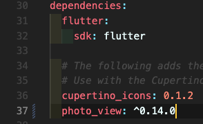 Step 1: pubspec.yaml에 photo_view를 설치해주시고 flutter pub get 해줍니다.