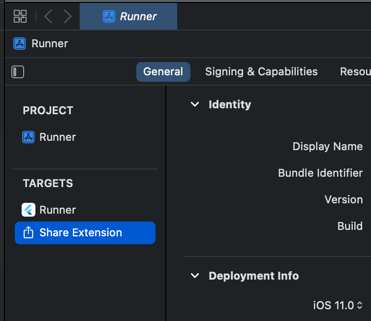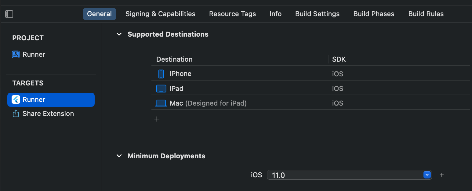 Step 5: Runner와 Share Extensiond의 Deployment target 버전을 일치시켜 줍니다.