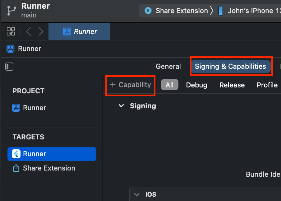 Runner, Share Extension 동일하게 해주시면 됩니다.