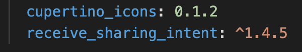 Step 1: pubspec.yaml에 receive_sharing_intent 패키지를 추가합니다. 현재 기준으로 최신 버전은 1.4.5입니다.