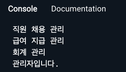 2) 관리자는 현재 HR(인사관리), Accounting(회계) 부분을 관리합니다.