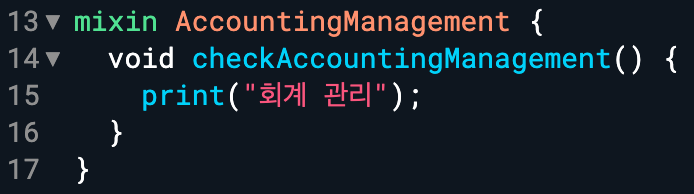 그 다음으로 mixin AccountingManagement를 입력합니다.