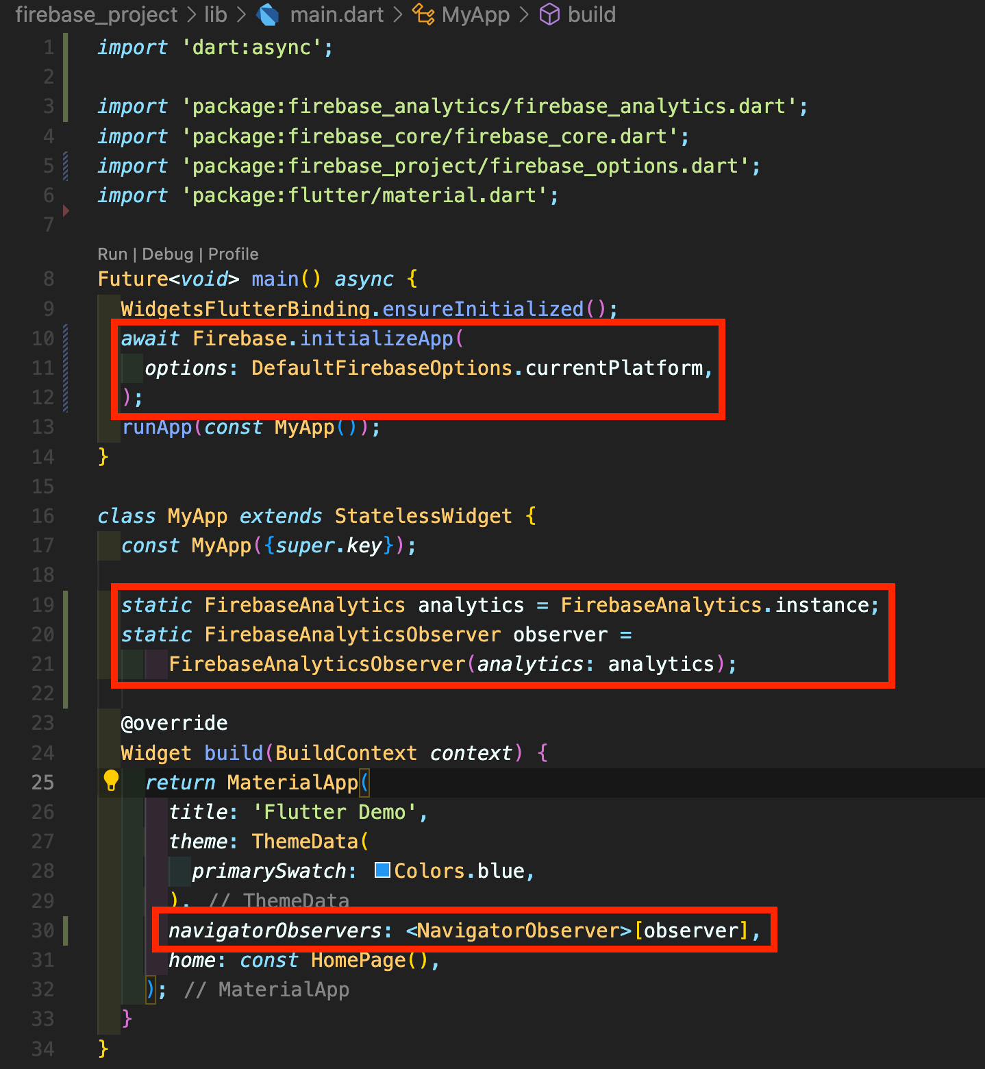 Step 5: 플러터 코드를 작성합니다 해당 빨간색 박스 부분을 추가하시면 됩니다.