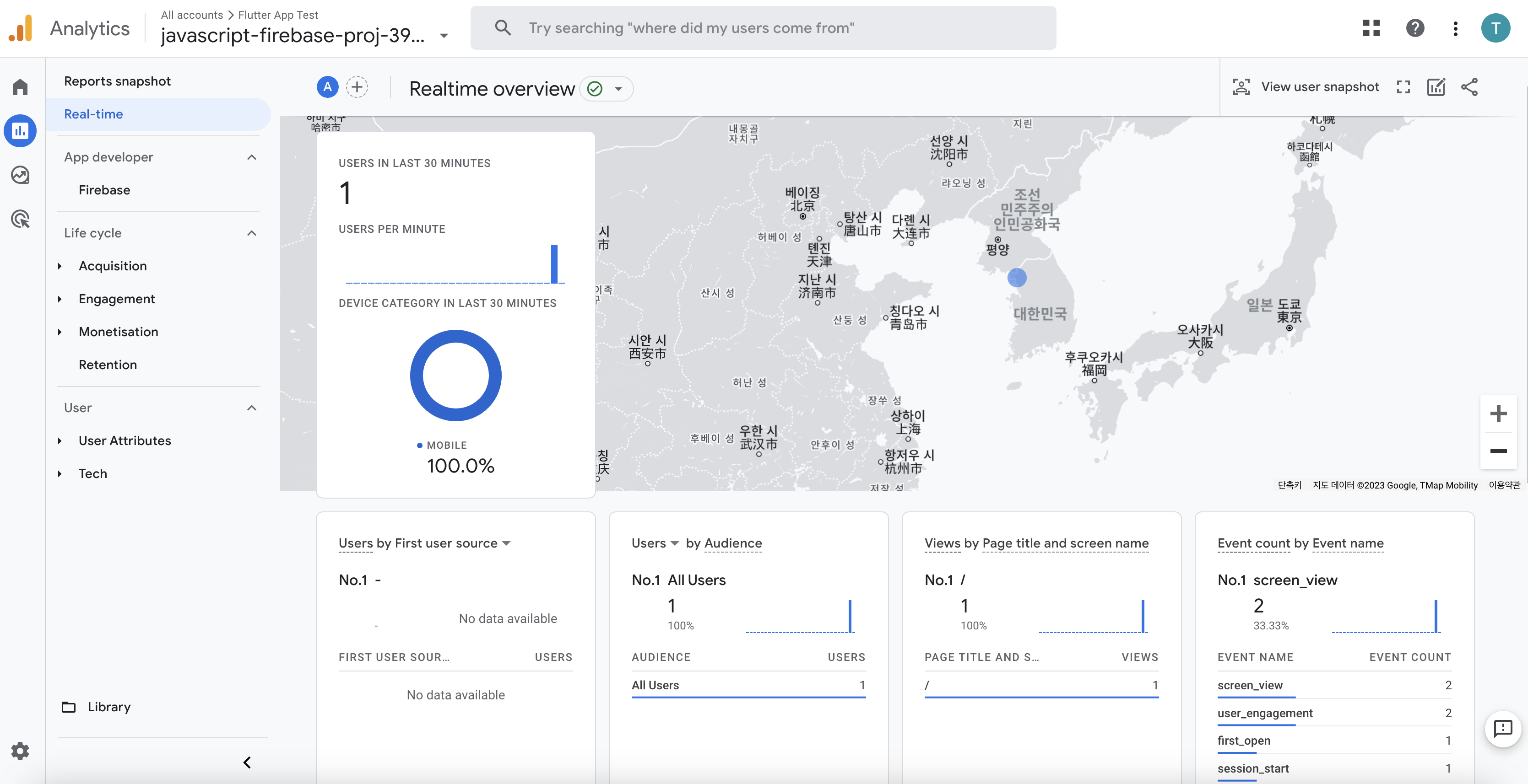 이 포스팅에서는 Google Analytics 4를 Flutter 앱에 연동하는 방법에 대해 살펴보도록 하겠습니다. 먼저 기본적으로 파이어베이스와 플러터 앱은 연동되어 있어야 합니다.