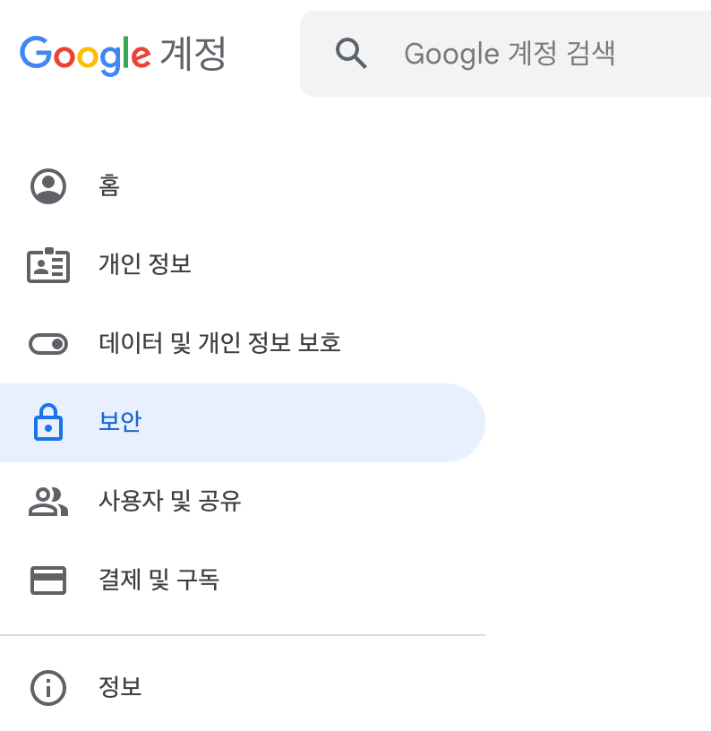 Step 5: 좌측에서 "보안"을 선택합니다.