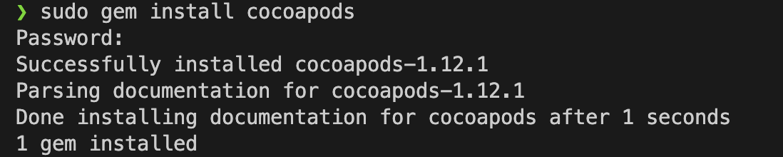 Step 4: 그리고 sudo gem install cocoapods 입력하시고 root 비밀번호(맥 비밀번호)를 입력하시면 됩니다.
