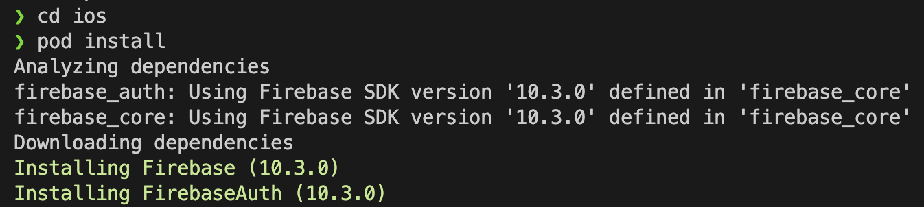 Step 3: ios 이슈이니 ios 경로로 가셔서 pod install 명령어 입력