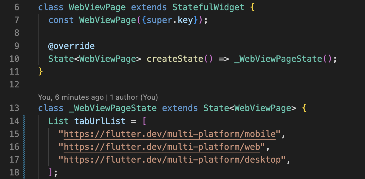 Step 3: 14-18번째 줄처럼 tabUrlList 리스트 변수를 만들어주고 그 안에 원하는 url들을 넣어줍니다.