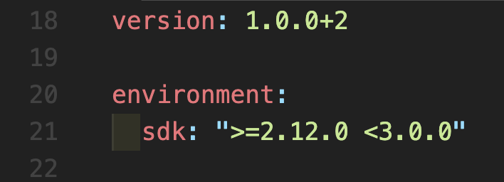 Step 2: pubspec.yaml에 sdk 버전을 확인합니다. 보통 2.7.0으로 되어 있다면 flutter pub get이 안 될 수도 있습니다.