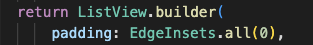 ListView, ListView.builder 등을 쓸 때 위아래로 여백(padding)이 생기는 경우가 종종 있습니다. 그 때 신속하게 해결 가능한 방법은 아래와 같습니다.