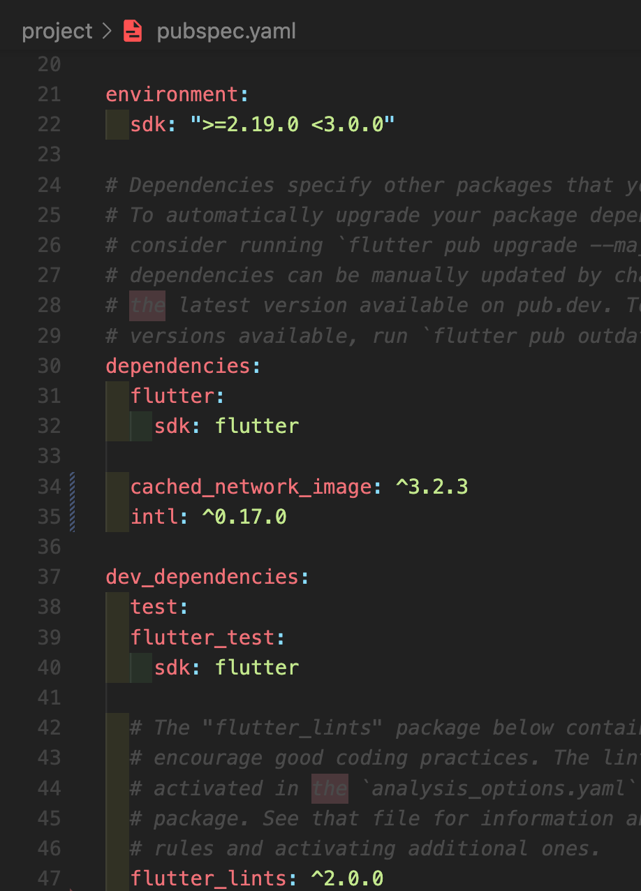 이 포스팅에서는 item list page(제품 리스트)만 진행합니다. 진행을 위해 사용한 패키지들입니다. cached_network_image, intl를 설치해주시고 터미널에서 flutter pub get해주시기 바랍니다.