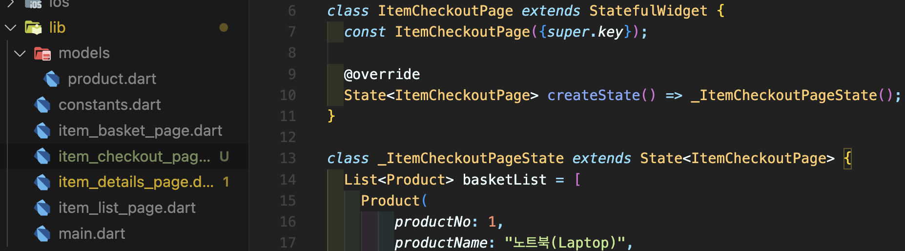 Step 1: item_basket_page.dart를 복사하셔서 이름을 item_checkout_page.dart로 변경해줍니다. 클래스, State 명도 모두 변경해줍니다.
