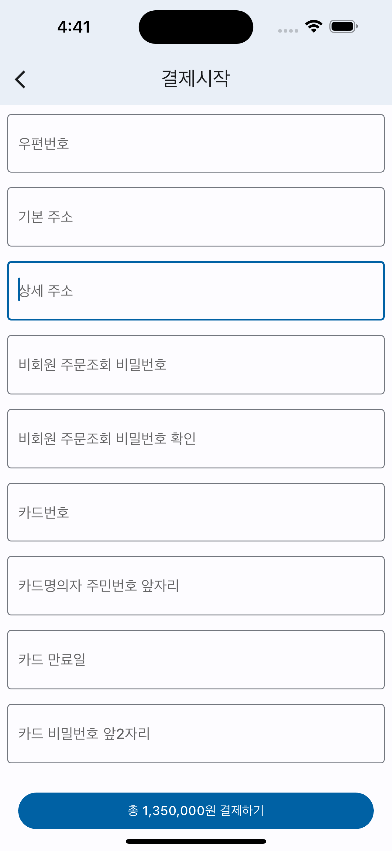 이번 포스팅에서는 결제시작 페이지 UI 구성에 대해 살펴보도록 하겠습니다.
