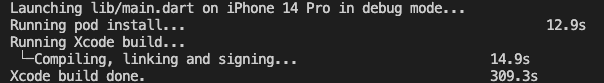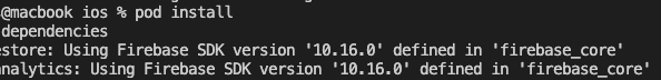 Step 7: 프로젝트 경로의 ios에 들어가셔서 pod install 진행하시고 빌드하시면 됩니다. 여기에서 만약에 에러가 나시면 pod update를 할 패키지가 있는 경우가 많습니다. (예를 들어 오류 부분에 Firebase/RemoteConfig 내용이 나온다면 pod update Firebase/RemoteConfig 명령어처럼 해당 패키지를 입력하여 업데이트 해야 합니다)