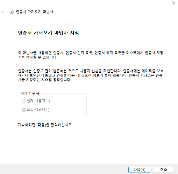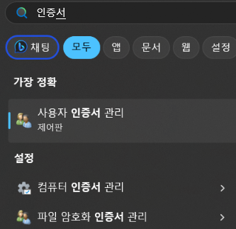Step 10: 검색에서 '인증서'를 입력하신 뒤 '컴퓨터 인증서 관리'로 들어갑니다.
