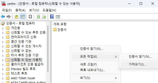 윈도우 앱을 배포할 때 msix 패키지를 사용해서 배포하게 되는데요. 이 경우 테스트 인증서로 되지 않아 개인 인증서를 설치하고 테스트 설치를 보는 경우가 생기게 됩니다.