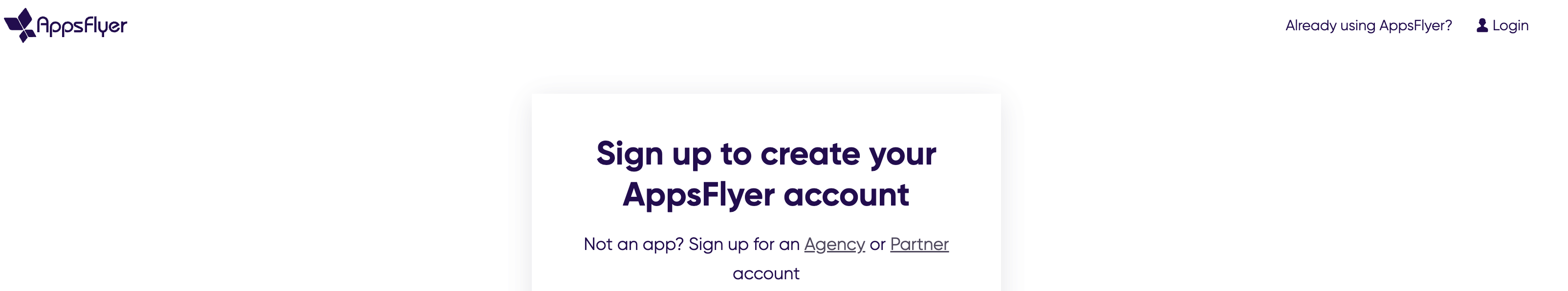 Step 1: Appsflyer 웹사이트에 들어가신 후 회원가입을 진행합니다. 여기에서 회사 이메일 등이 필요하므로 회사 계정을 이용하셔야 합니다.