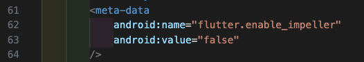 Impeller를 아래와 같이 비활성화도 해보았지만 이렇게 해결이 되지 않았지만 플러터 버전을 3.24.4로 다운그레이드 해보니 해당 이슈가 깔끔하게 사라졌습니다.