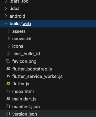 그러면 아래와 같이 build/web 경로에 파일들이 생성됩니다.