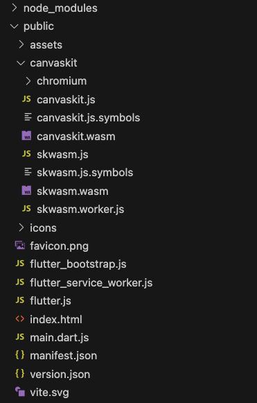 Step 4: Step 1에서 만들어진 build/web 파일들을 모두 복사하여 Vite 프로젝트의 public 폴더 내에 모두 넣어줍니다.