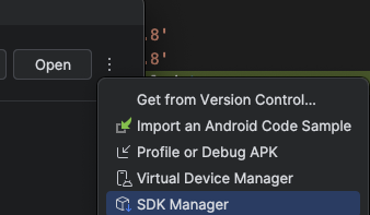 Step 3: 안드로이드 스튜디오를 열어주고 SDK Manager에 접속합니다.
