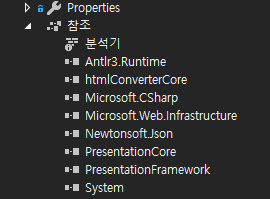 Step 9: 만약 배포시에 codedom 관련 오류가 나는 경우 솔루션 탐색기에서 "참조" 부분에서 Microsoft.codedom 파트를 제거해주면 됩니다.