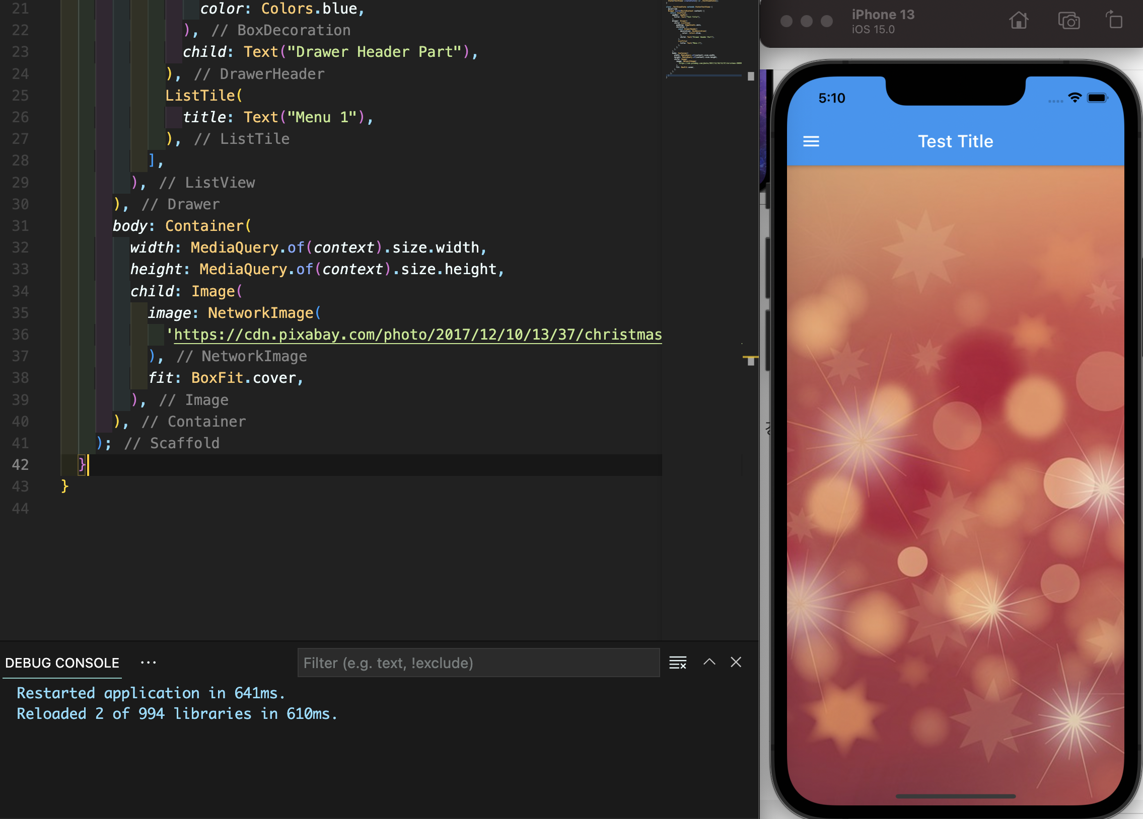 이번에는 NetworkImage 위젯으로 넘어가겠습니다. AssetImage와 사용 방법이 동일하나 AssetImage에서 로컬 경로가 사용되었던 것과 달리 여기에는 url이 사용됩니다.