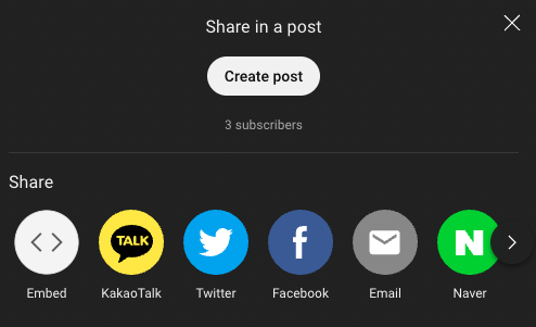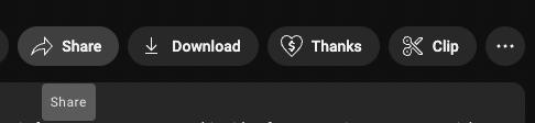 다음으로는 유튜브 영상을 삽입하는 방법입니다. 아래처럼 유튜브 영상을 하나 접속하여 Share (공유) 버튼을 누릅니다.