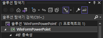 Step 3: 오른쪽 솔루션 탐색기의 WinFormPowerPoint에 마우스 우클릭합니다.