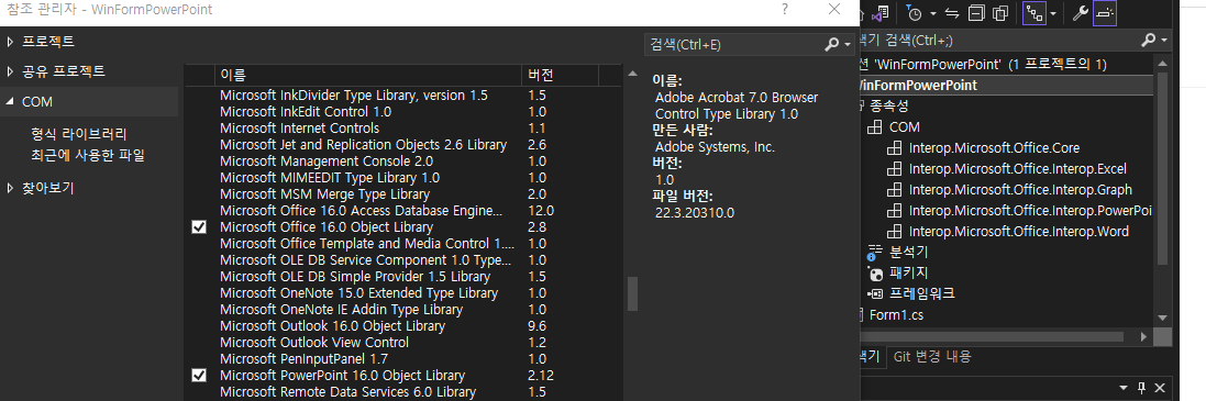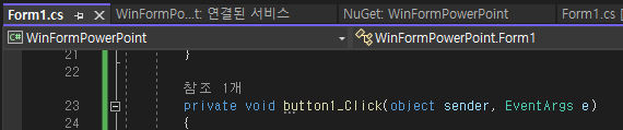 Step 3: 오른쪽 솔루션 탐색기의 WinFormPowerPoint에 마우스 우클릭합니다.