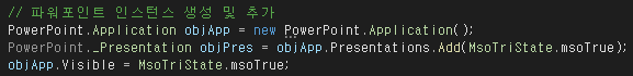 그리고 파워포인트 인스턴스를 생성 및 추가해주면 됩니다.