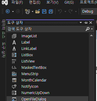 Step 1: 보기 -> 도구상자 -> OpenFileDialog를 드래그 앤 드롭으로 추가해줍니다.