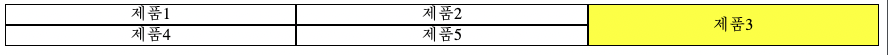 결과는 아래와 같고 제품3이 column 3번째, 그리고 row가 첫 번째 줄에서 시작하여 row 2줄을 span할 수 있도록 하는 것입니다.