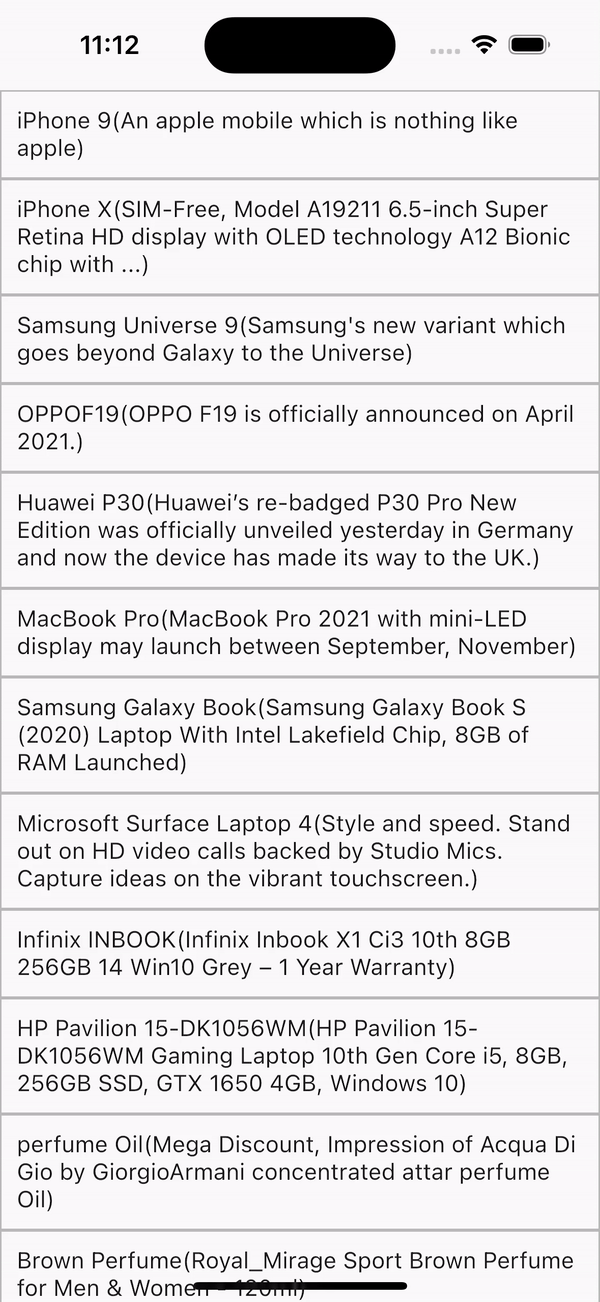 Step 6: 결과는 아래와 같습니다. 아래로 스와이프할 때 refresh 아이콘이 보이면서 새로고침 되는 것을 알 수 있습니다.