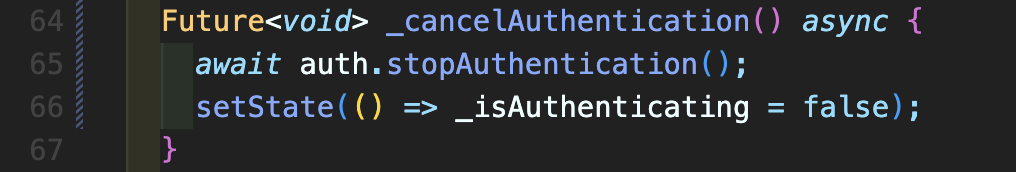Step 6: _cancelAuthentication() async 메소드도 넣어줍니다.