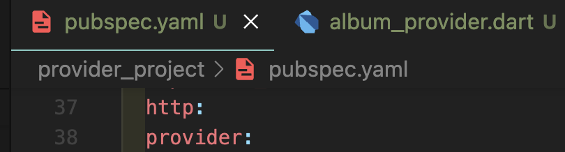 Step 2: pubspec.yaml 파일에 http와 provider를 작성해주시고 터미널에 flutter pub get 해주시거나 세이브 해주시면 됩니다.