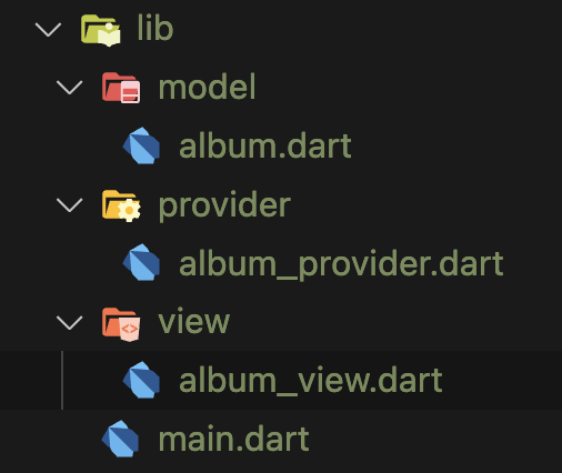 Step 4: provider 폴더 내에 album_provider.dart를 아래처럼 작성해줍니다.