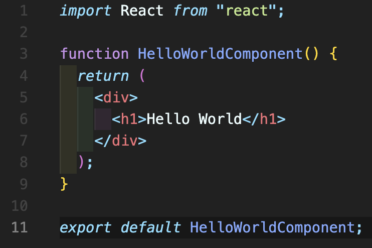 11번째 줄에 다른 파일에서 이 HelloWorldComponent 함수형 컴포넌트를 사용할 수 있도록 내보내줍니다.