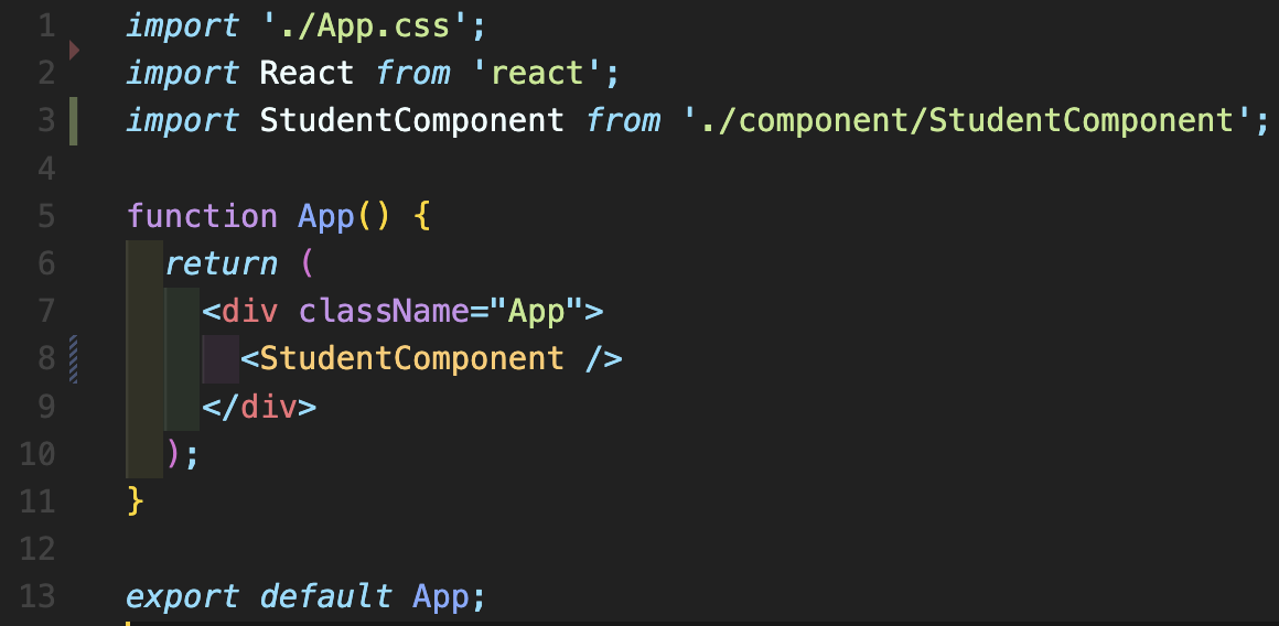 Step 3: App.js에 <StudentComponent />를 추가합니다.